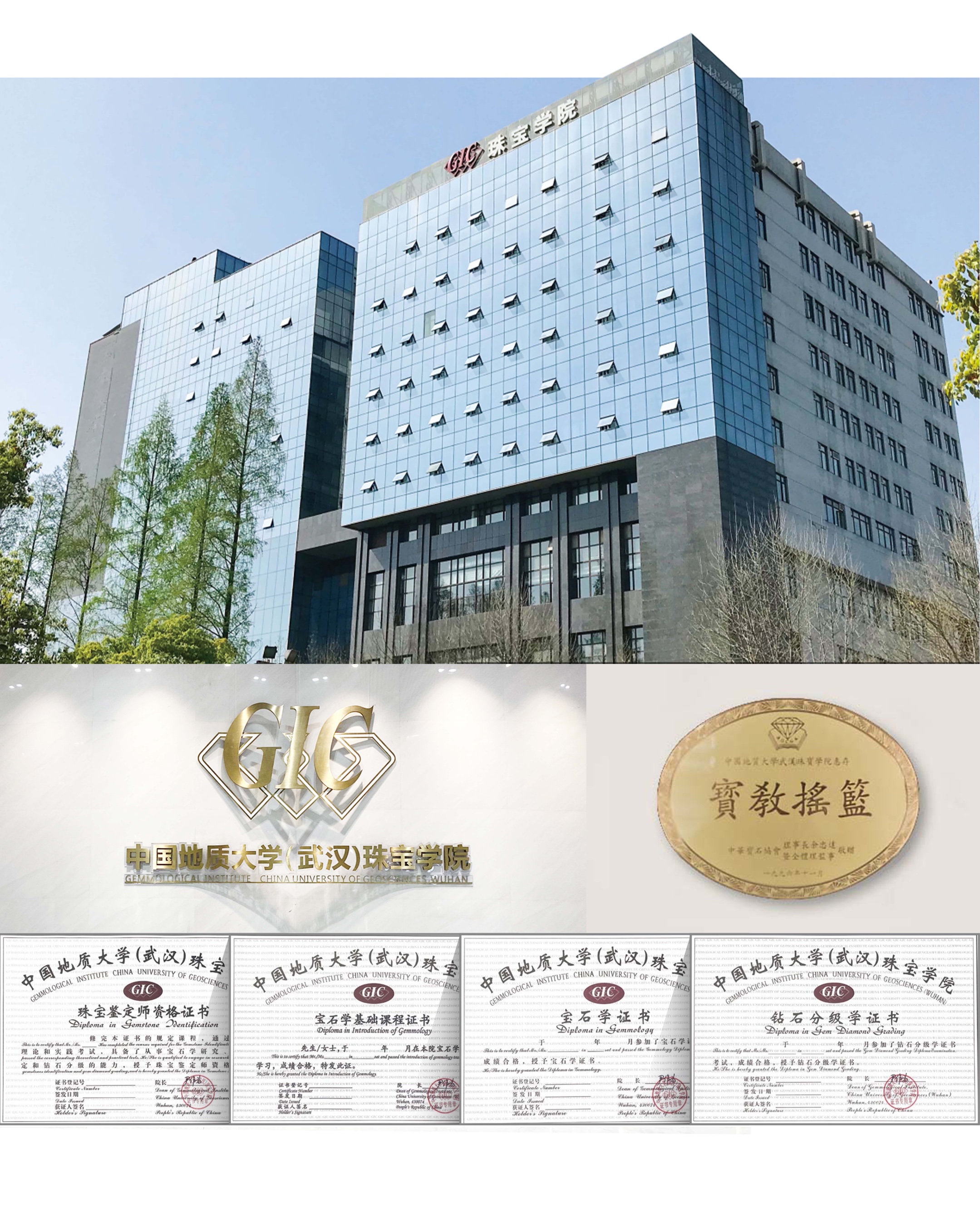 中国地质大学是教育部直属全国重点大学, 是国家批准设立研究生院的大学,是国家“211工程”、国家“双一流”建设高校。学校于2012年8月获批准建设“国家专业技术人员继续教育基地”。珠宝学院(简称GIC)是我国最早的珠宝教育机构,是中国珠宝人才培养的最高学府,被誉为“宝教摇篮”。